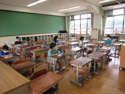 18日(月)は1組の学校相談日でした。1組は21人の参加でした。21人を3つのグループに分け,一クラス7人で相談日を行いました。健康観察をして,15分担任と学習相談タイム,15分2組の福澤先生とキャリアパスポートタイム,15分3組の橋本先生と運動タイムを行いました。みんな久しぶりの学校に少し緊張していましたが,だんだんと緊張もほぐれて,笑顔が見られるようになりました。ご家庭でも時間をみながら同じように過ごせるといいですね。