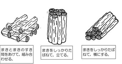 お家からアウトドアに出かけたり,学校から野外活動に出かけると,食事を作ったり,キャンプファイヤーをする時にまき(木材)を燃やすことがあります。