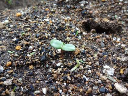 ヒマワリが一番にめを出しました。
