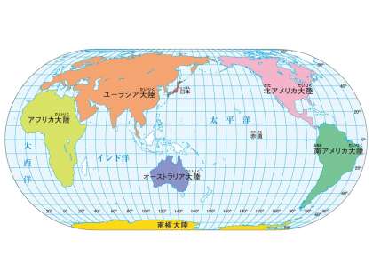 世界の主な大陸と海洋の名前を確かめてみましょう。