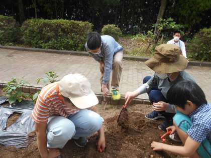 土を耕したり,肥料を混ぜ込んだり,畝を作ったりしました。