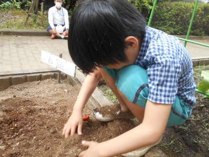 昨日の低学年の子たちのがんばりもあって,野菜を植える準備ができました。