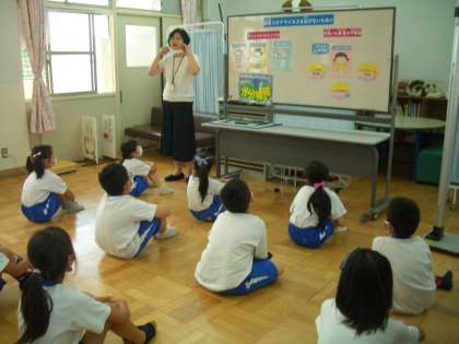 養護の先生から,マスクの扱い方について教えていただきました。。