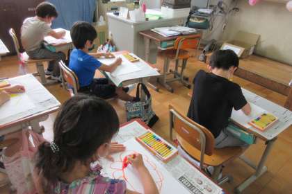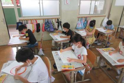 図画工作の学習で,「おひさま,にこにこ」を学習しました。