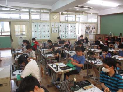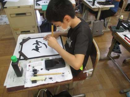墨をすって集中力を高めてから,毛筆の練習に取り組みました。