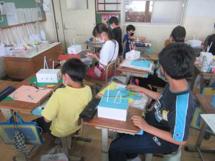 クランクという動く仕組みを作って,上下,前後にものを動かします。