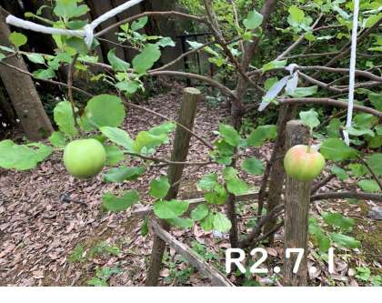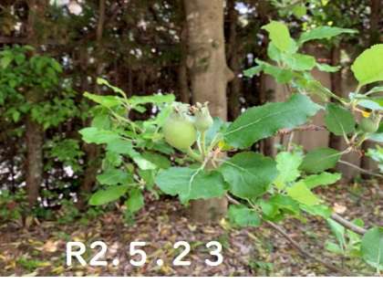 学校だより6月号でも紹介しましたが,本校には,「ニュートンのリンゴの木」の子孫のリンゴの木があります。10年目にして初めて実をつけました!赤みを帯びてきています。どこまで成長するのか,見守っていきます。