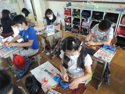 モーターを速く回したり,豆電球を明るくしたりする方法を調べよう!をめあてに,2時間連続で学習しました。予想で出てきたみんなの意見をもとに,2つのかん電池のつなぎ方を工夫して実験に取り組みました。ちがうきょく同士でつなぐ直列つなぎ,同じきょく同士でつなぐへい列つなぎ。どちらもかん電池を2つ使っているので速く回ったり明るくなったりするかと思いきや・・・意外な結果に不思議そうなみんなでした!