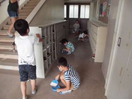 式の後には,全校で大そうじです。教室や廊下,特別教室などを一生懸命にきれいにしようとする子どもたちの姿が見られました。
