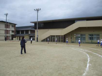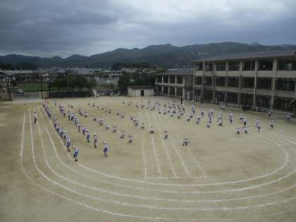 応援座席や徒競走の並びなどを確認した後,実際に100m走を走ってみました。