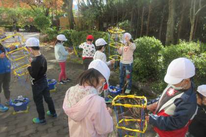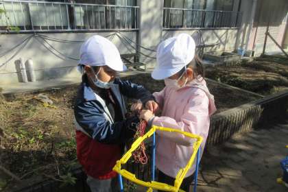 つるを支柱から上手に外し,リースになる丸を作りました。