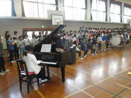 けんばんハーモニカ,リコーダーに加え,鉄琴,木琴,大太鼓,シンバルなど,