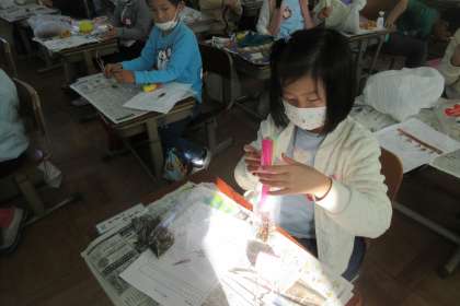 生活科の「あきといっしょに」の学習で,あきのものを使っていろいろなものを作りました。
