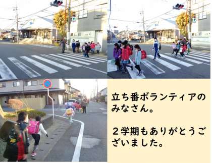 2学期も明日23日で終わりです。立ち番ボランティアの皆様,ありがとうございました。3学期もよろしくお願いいたします。