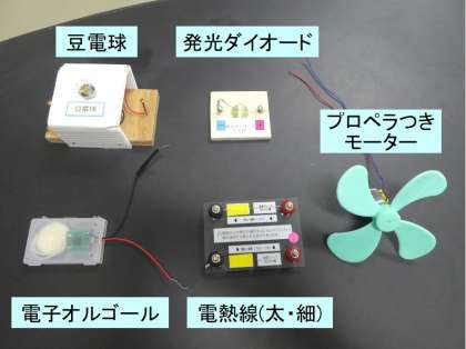 そのことをもとにして,いくつかの機器に,手回し発電機をつないで発電した時の手ごたえのちがいを調べました。