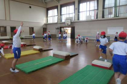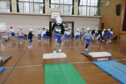 はじめてのとびばこにドキドキの表情の子どもたち!