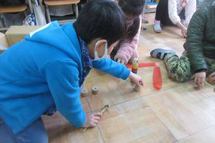なかなかうまくいかない遊びもありますが,何度も何度も挑戦しました!