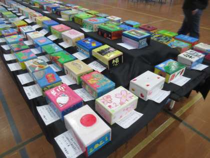 16日(火)明日からの作品展に向けて,作品の搬入を終えました。それぞれが工夫を凝らし,6年間で学んだことや感じたことをオルゴールボックスに表しています。全クラスの作品が並ぶと迫力があります。