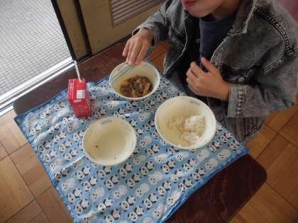 身は柔らかく,牛肉の甘味が感じられ,子どもたちも「おいしい!」とパクパクご飯といっしょに味わって食べていました。
