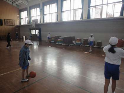 体育の学習でバスケットボールをしています。内容は,パスやドリブルの練習から,それを組み合わせた練習をしました。子どもたちは,相談や教え合いをし,学びを深めています。次回からの試合で今回の練習をいかして欲しいと思います。