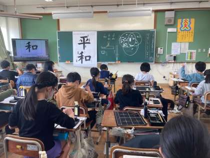 4年生で学習する書写の最後の字「平和」を書きました。