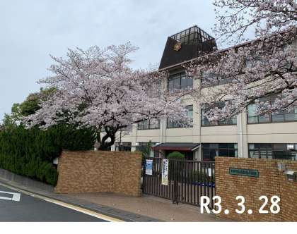 正門の桜も満開となりました。明日は離任式,お別れはさみしいですが,桜の花のように明るくお見送りできればと思います。