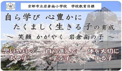 今年度は,117名の1年生を迎え,全校児童810名,58名の教職員でスタートいたしました。本年度も,「自ら学び 心豊かに たくましく生きる子の育成〜笑顔かがやく岩倉南の子」という学校教育目標のもと,めざす子ども像として掲げた「思いやりのある子(徳)・自ら進んで学ぶ子(知)・体を大切にする子(体)」の調和のとれた育成を図り,『生きる力』を育てるために学校教育活動を進めてまいります。