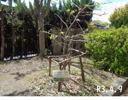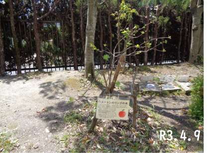 昨年度に初めて実を付け,3個のリンゴが収穫できました。また,若葉が出てきました。今年も実をつけてくれるのでしょうか。楽しみに観察していきます。