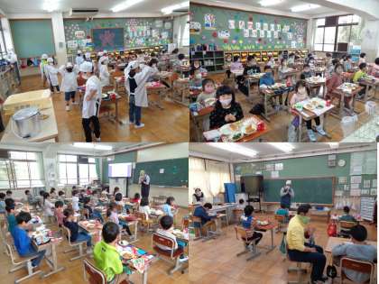 準備の仕方,給食当番のエプロンのたたみ方,待ち方,マスクの着脱の仕方・・・食べるまでにゆっくり時間をかけました。「食べるときは静かに。」約束をしっかり守っていただきました。
