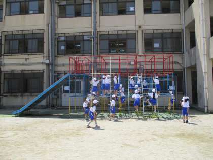 総合遊具の使い方を学習してから,実際にみんなで遊んでみました。