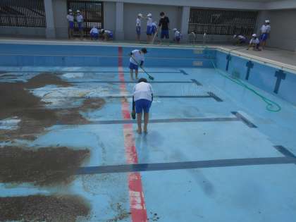 6年生が水泳学習に向けてプールを掃除してくれました。