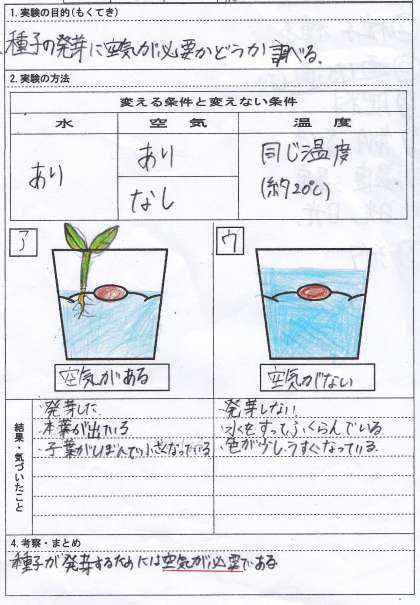 理科だより5年「発芽の条件 結果」