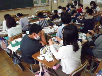 図画工作科の「光の形」の学習で,光を通すオブジェを作っています。