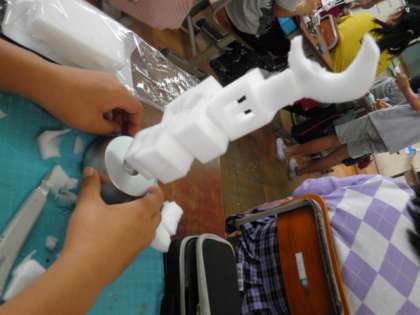 設計図も描きましたが,切り方で形の変わるスポンジを触りながら,
