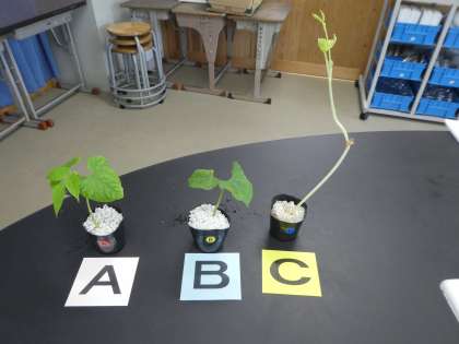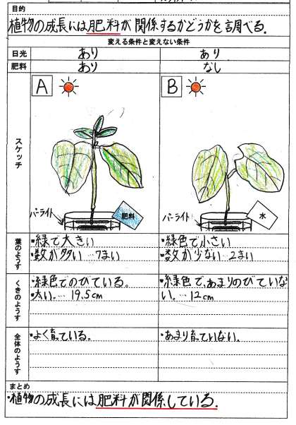 植物の成長に,肥料と日光が関係しているかどうかを調べました。