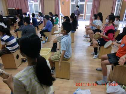 今日は,リコーダーで指使いの練習をしたり,カホンやタンブリンを鳴らしたりしてアンサンブルを楽しんでいました。
