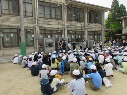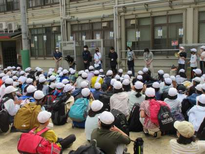 ちょうど過ごしやすい気候の中,運動場で無事出発式を行うことが