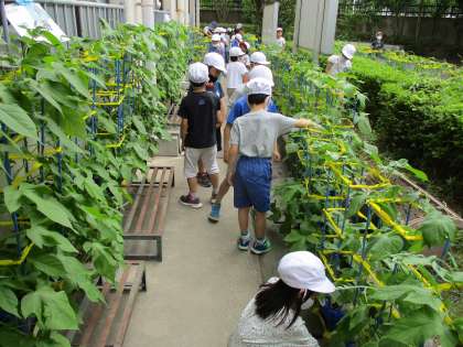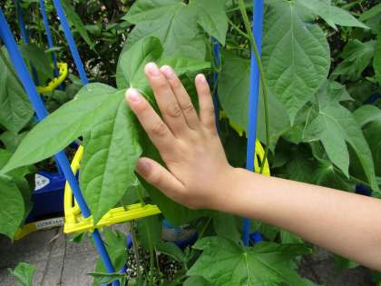 葉は子どもたちの手よりも大きくなり,蕾がどんどんでき始めています。