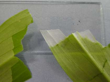 葉の裏側の薄皮をはがして観察するのですが,少しこつがいります。