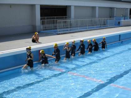 前回よりも少し長い距離を移動したり,水に顔をつけたりする活動を増やして行いました。