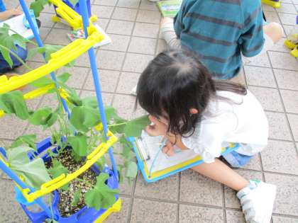 毎朝の水やりの時につぼみが出来ているか,花が咲いているかを楽しみに見ています。