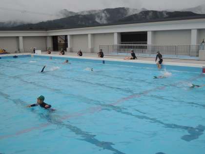 最後は自分の好きな泳ぎ方でどの辺りまで泳げるかチャレンジしました。「線〇本ぶん泳げた!」「〇〇さん!見ててな〜!」いろいろな声が聞こえてきました。次回も楽しみですね!