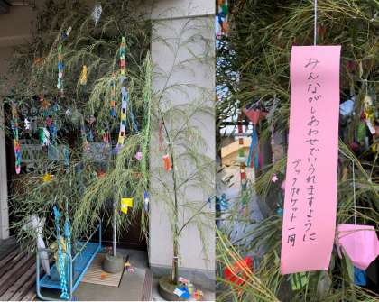 PTAサークルの「ブックポケット」さんが,図書館前に七夕飾りを用意してくださいました。いつもありがとうございます。