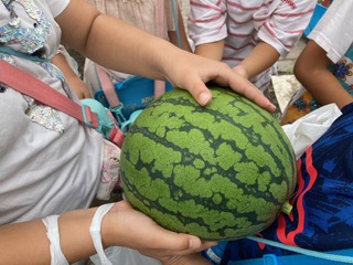 ということになり,重いスイカを持つ体験もしました。