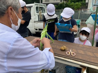 地域の方が,育っていた野菜を目の前で収穫してくださいました。