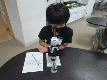 たった1滴の緑色の水の中に,あまりにも沢山の小さな生物がいることを知り,みんな一生懸命顕微鏡で観察していました。