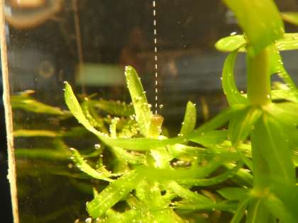 光を当てると,オオカナダモの茎の切り口や葉からあわの出てくる様子が観察できます。