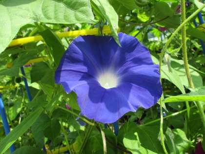 植木鉢は幅30cmほど,高さは支柱とアサガオを含めて1m程のものになります。
