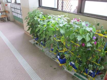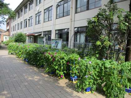 子どもたちが大切に育ててきたアサガオがどんどん開花しています。