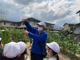 普段そばを通っている子も,畑にどんなものがあるか興味がわいたようでした。